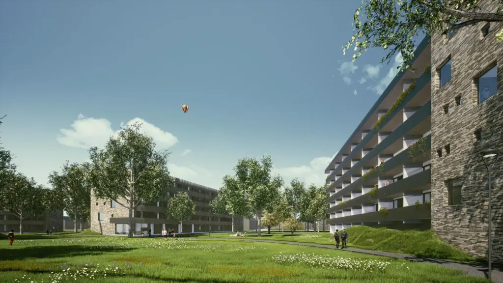 Hier hebben we voor BAM wonen Eindhoven de eerste fase van 118 woningen mogen maken. De appartementen zijn allemaal Nul-op-de-Meter-woningen (NOM). Dat betekent dat de woningen op jaarbasis per saldo een gemiddeld energieverbruik van nul hebben; ze verbruiken minder of net zoveel energie dan dat er lokaal duurzaam opgewerkt wordt.